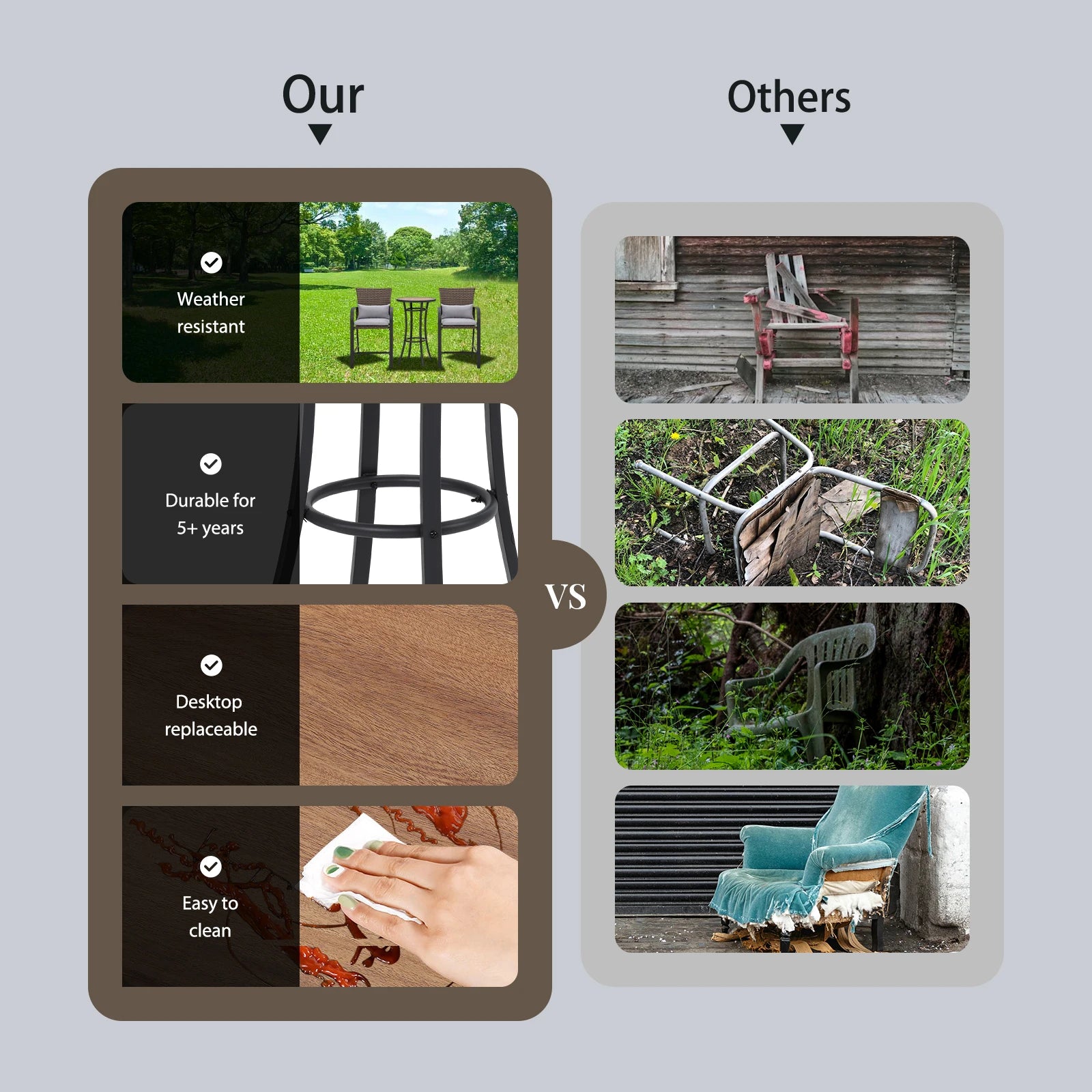 - You get a 3-piece setup featuring a bar-height table and two seats—perfect for casual dining or drinks.